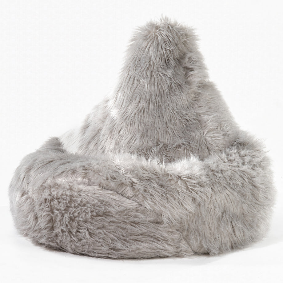 Lounge Pug Sedací vak hruška Mongolská Umělá Kožešina Šedá– Big Bertha Original CZ