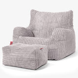 Lounge Pug, Sedací vak křeslo, Manšestr Stříbrná šedá– Big Bertha Original CZ